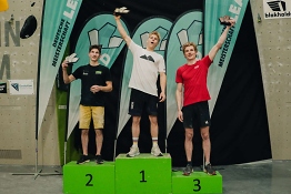 Auch bei den Herren setzte sich mit Yannick Nagel der Favorit durch. Der 19-Jährige erreichte in der Saison 2025 bei vier von sechs Weltcups das Halbfinale. Bei der DM kletterte der Sportsoldat durchweg souverän und zeigte besonders im oberen Drittel der Finalroute an den letzten harten Zügen seine Stärke. Erst knapp unter dem Top-Griff kam er nicht weiter und sicherte sich mit einer Wertung von 46 den Sieg. Platz zwei ging an Erik Pollak (DAV Wetzlar) und Platz drei holte sich Philipp Göthert vom Kölner Alpenverein.