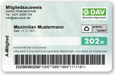Zum Jahresanfang werden wieder die neuen DAV-Mitgliedsausweise versendet. Je nach Zahlungsart des Mitgliedsbeitrags unterscheidet sich der Ablauf der Versendung: