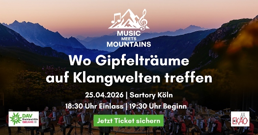 Music meets Mountains: Der Vorverkauf über eventim hat begonnen. Sichert euch jetzt die besten Plätze im Sartory Saal!