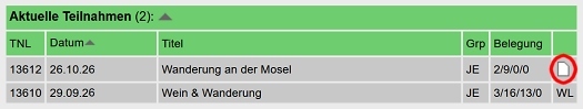 Alle Teilnehmenden, die so ihr Einverständnis gegeben haben, können die Kontaktdaten der anderen einsehen. Dies gilt nicht für die Kontaktdaten derer, die auf der Warteliste stehen oder "in Bearbeitung" sind (Status "vl").